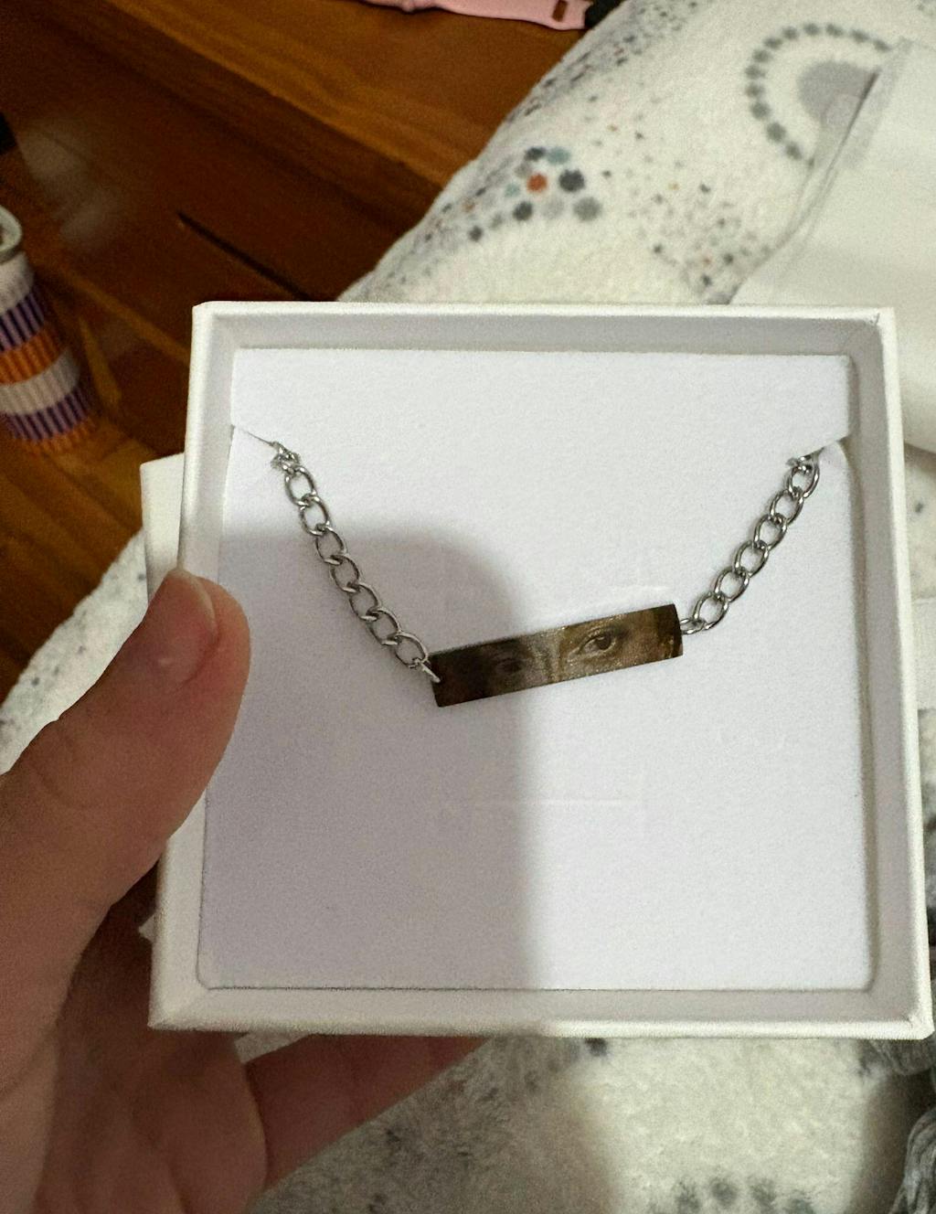 Pulseira espetacular, de ótima qualidade, a impressão dos olhos ficou muito bem e as letras também. Uma prenda sem sombra de dúvida maravilhosa.