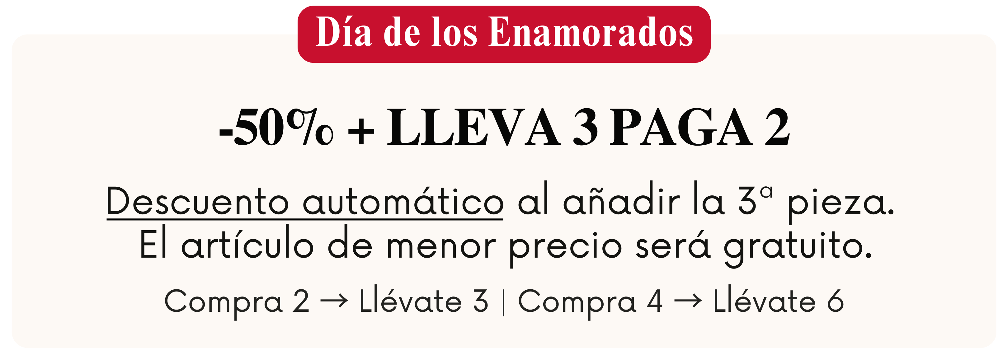 Añade 3 o más piezas a Carrito ¡Y automáticamente, al finalizar la compra, el artículo con el precio más bajo corre por nuestra cuenta!