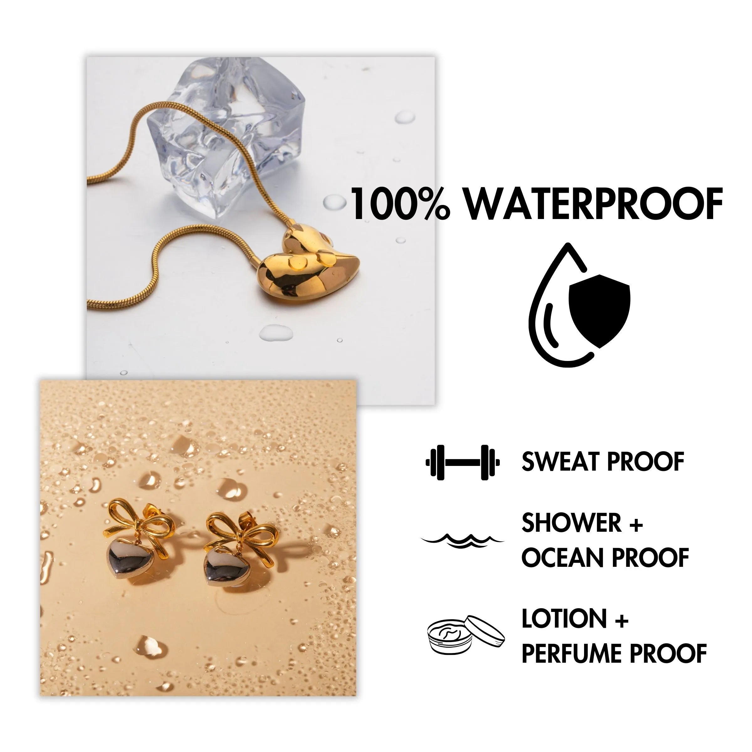 As nossas jóias são produzidas com aço inoxidável de alta qualidade e revestidas com ouro 18k através de um processo avançado de PVD (Physical Vapor Deposition). Este método moderno, além de ser ecológico, garante um revestimento muito mais espesso e durável do que os métodos tradicionais, resultando em jóias que são 100% à prova d'água. Podes usá-las no banho, na piscina, na praia ou durante o exercício, sem te preocupares com manchas ou descoloração.