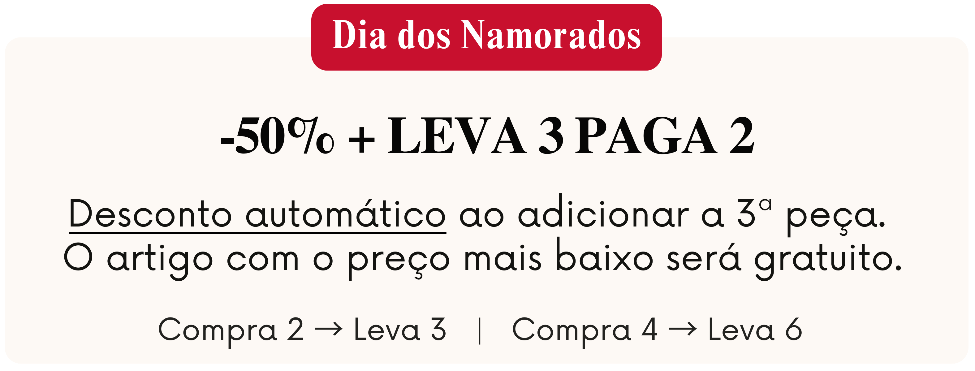 Adiciona 3 ou mais peças ao carrinho e, automaticamente, no checkout, a peça de menor valor fica por nossa conta!