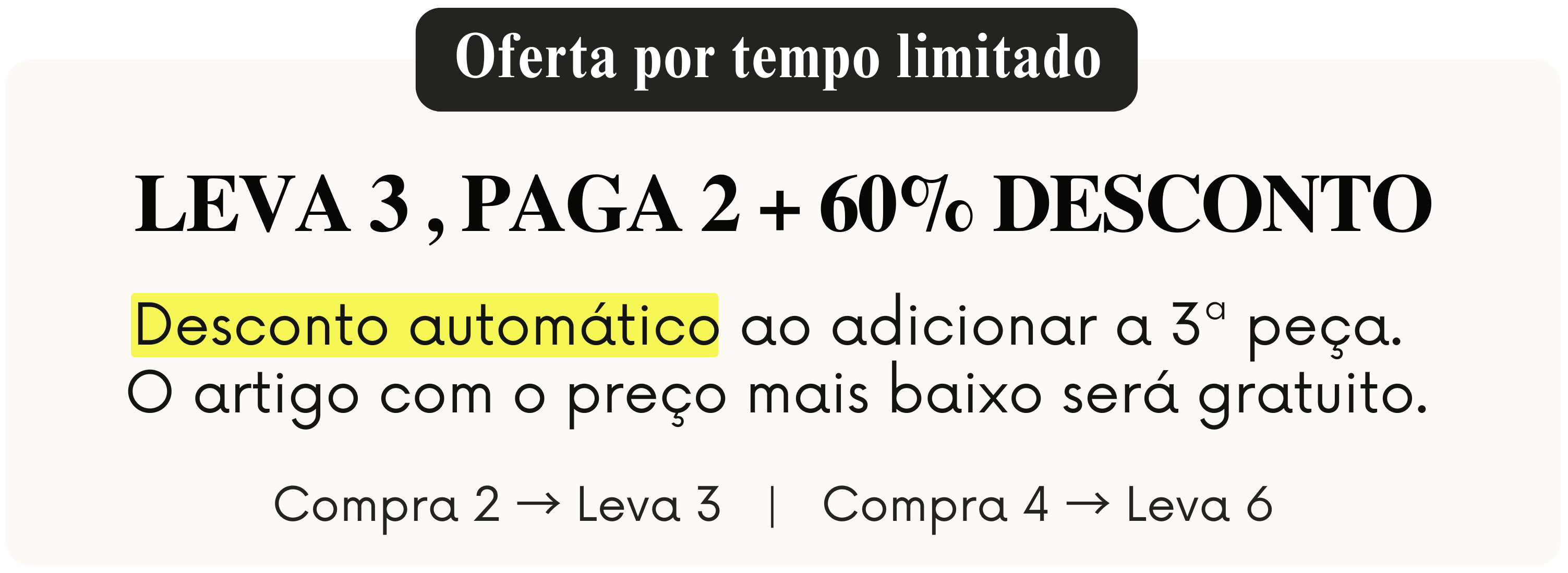Adiciona 3 ou mais peças ao carrinho e, automaticamente, no checkout, a peça de menor valor fica por nossa conta!