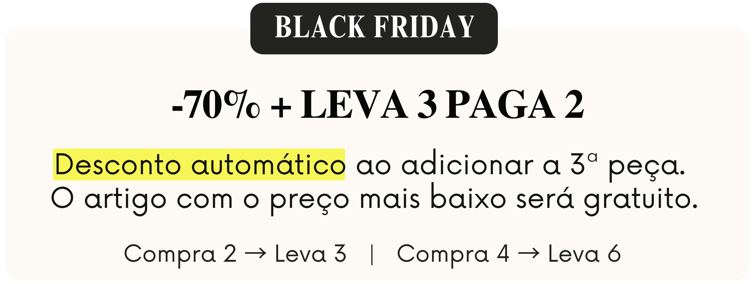 Adiciona 3 ou mais peças ao carrinho e, automaticamente, no checkout, a peça de menor valor fica por nossa conta!